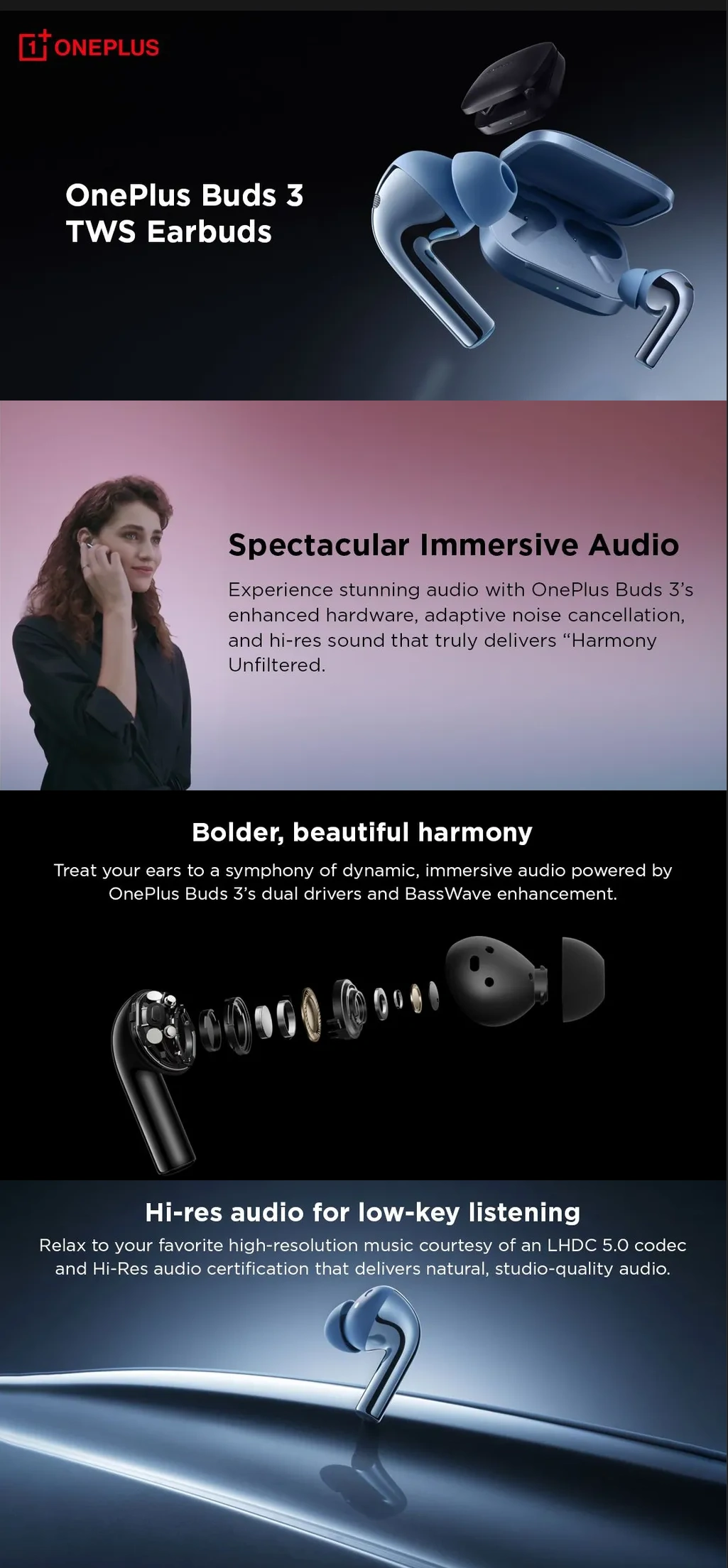 OnePlus Buds 3 TWS Wireless Bluetooth Noise Canceling Sport EarBuds - Splendid-blue, Oneplus