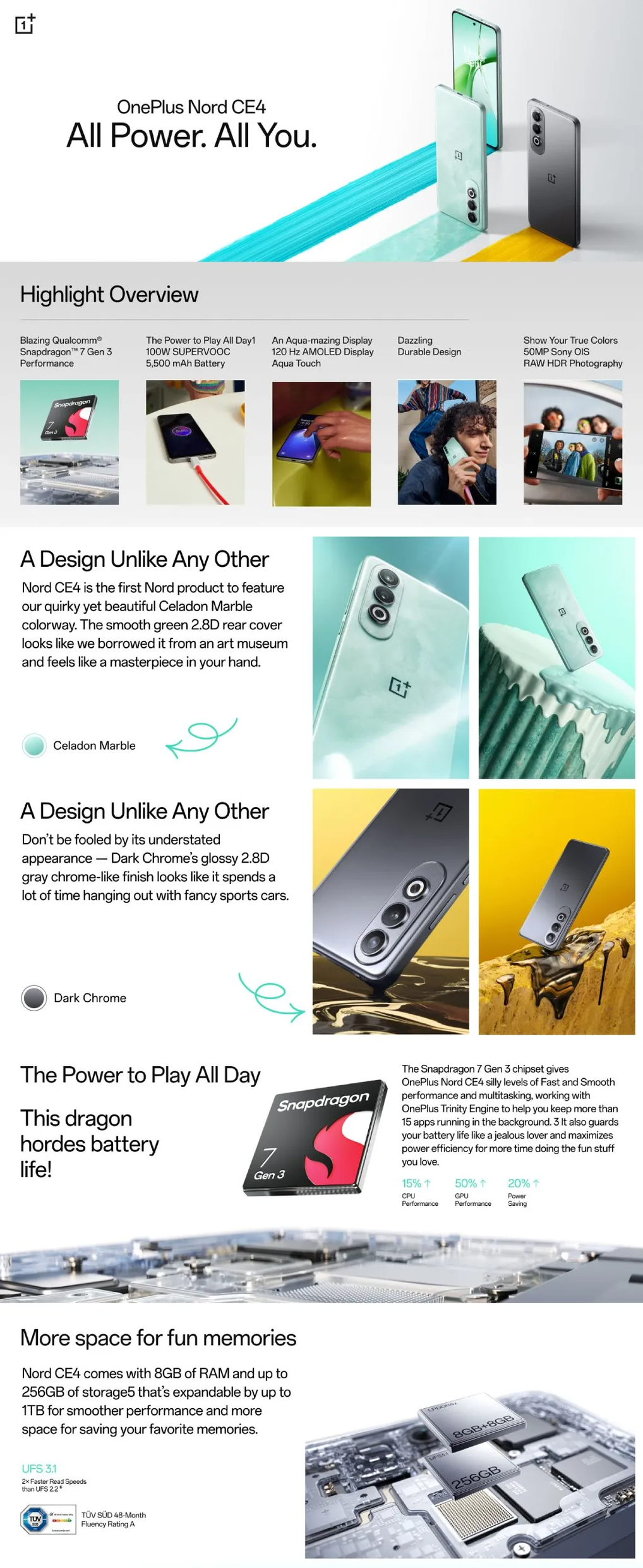 | OnePlus Nord CE4 8 GB RAM 128 GB (Celadon Marble) |