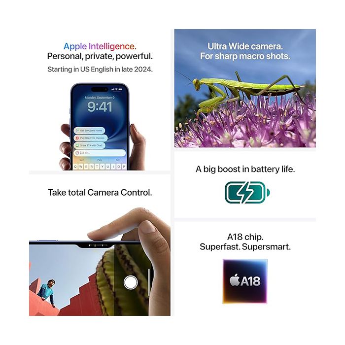 The Apple iPhone 16 Plus combines enhanced performance with a larger display and powerful camera capabilities, making it an ideal smartphone for productivity, entertainment, and creativity. With FaceTime, 5G support, and the latest iOS experience, it offers everything you need in a sleek and durable design.